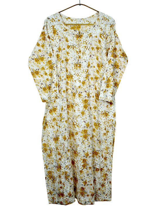 DANIA YELLOW LONG MULMUL KURTA SET