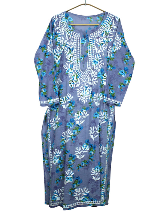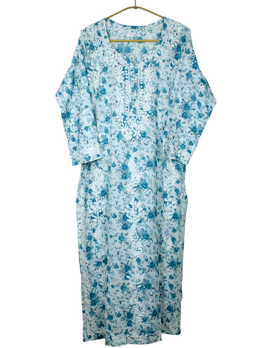 DANIA BLUE LONG MULMUL KURTA SET