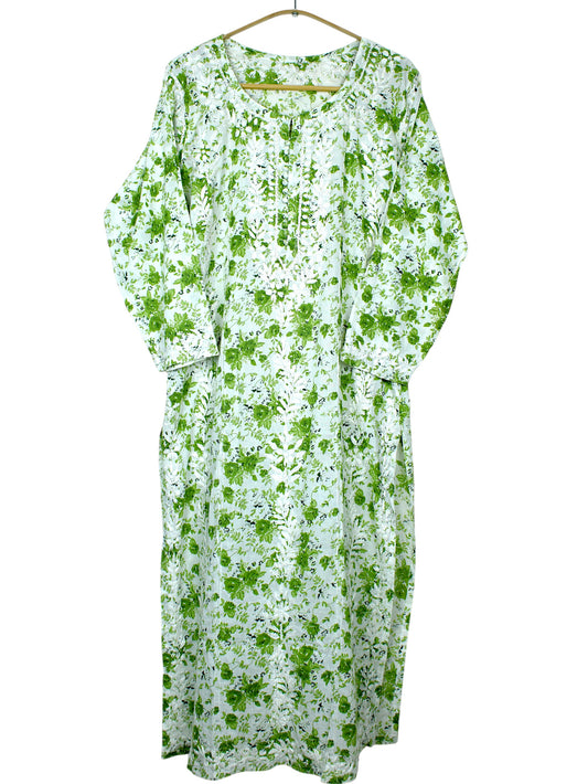 DANIA GREEN LONG MULMUL KURTA SET