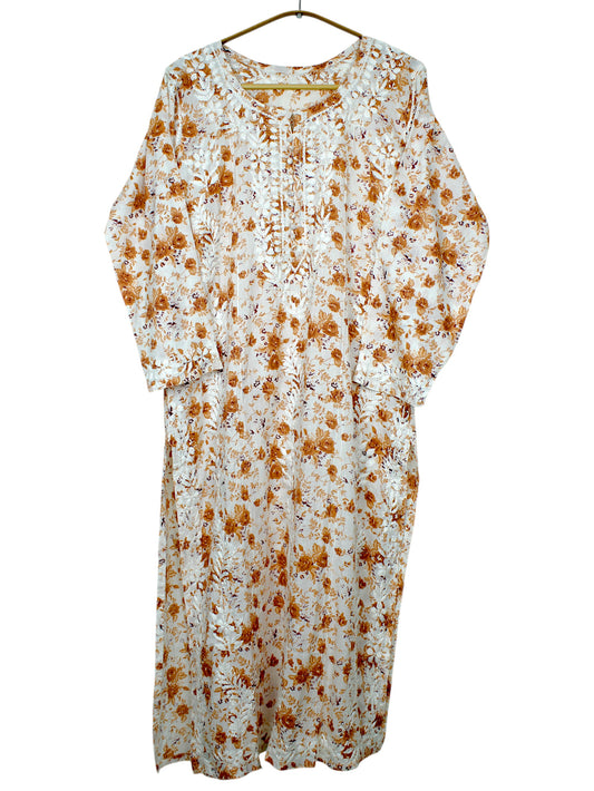 GULZAR ORANGE LONG MULMUL KURTA WITH PANT SET