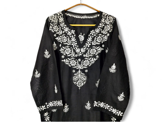 BLACK FINE SOFT COTTON LONG KURTA