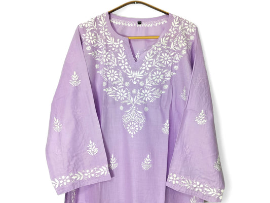 LAVENDER LONG RAYON CHIKANKARI KURTA
