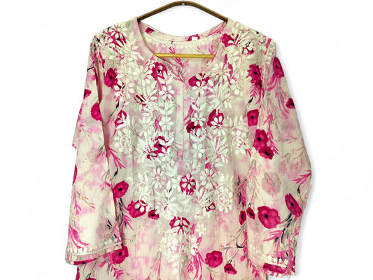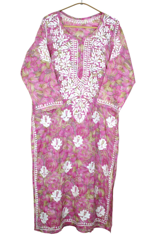 PINK MULMUL BLOSSOM PRINTED LONG KURTA