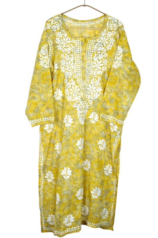 YELLOW LONG RAYON CHIKANKARI KURTA