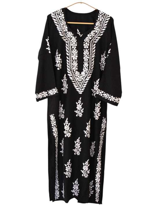 BLACK LONG RAYON KURTA WITH FLORAL PATTERN