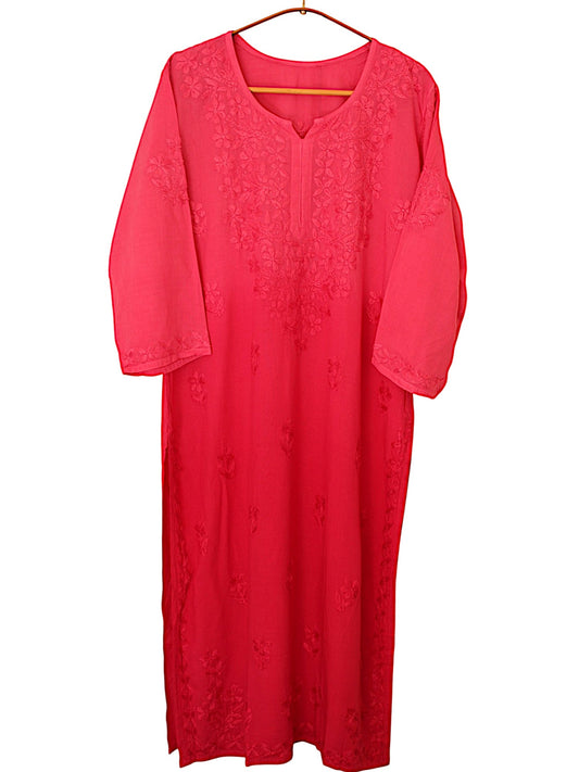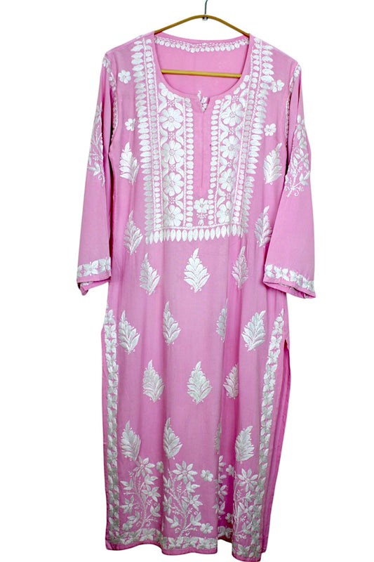 HINA PINK LONG PRINTED RAYON CHIKANKARI KURTA