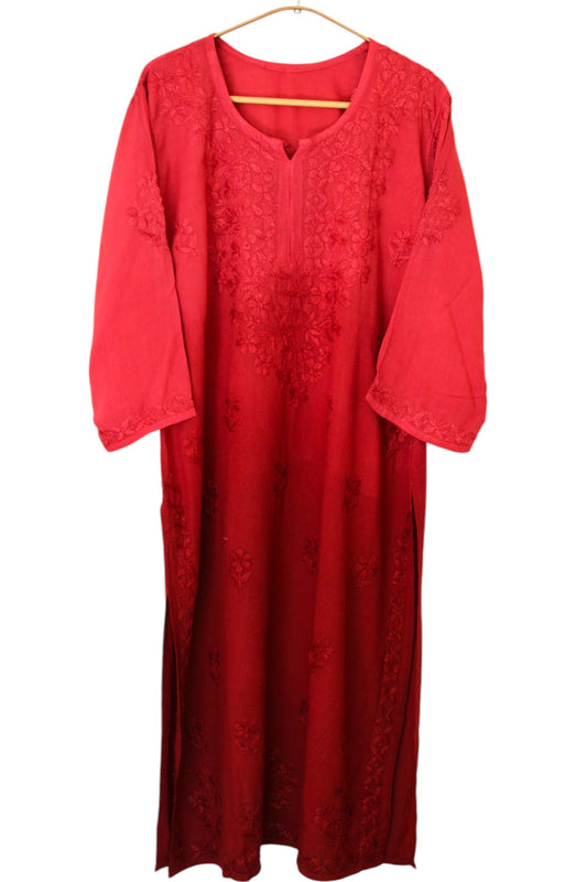ELARA MAROON RUSTY RAYON LONG KURTA