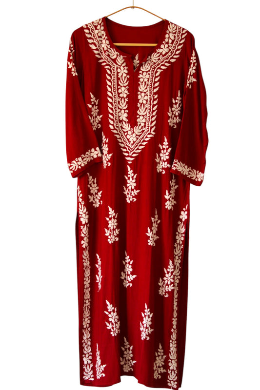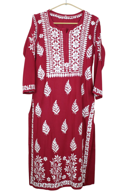 MAROON LONG RAYON KURTA WITH FLORAL PATTERN