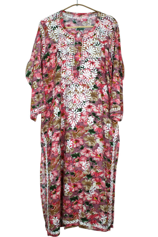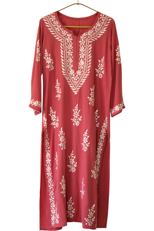 DUSTY PINK LONG RAYON KURTA WITH FLORAL PATTERN