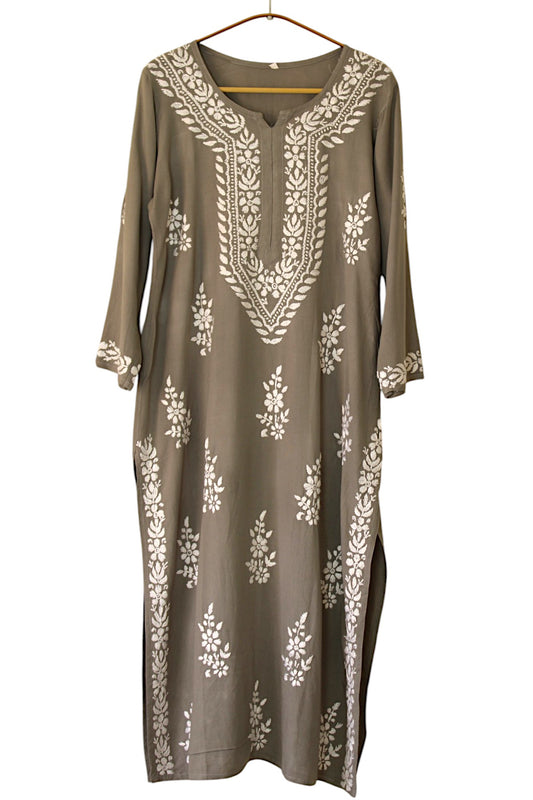 GREY LONG RAYON KURTA WITH FLORAL PATTERN