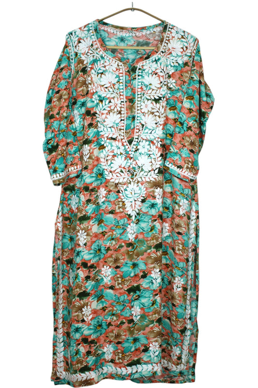 RUSTY ORANGE LONG RAYON KURTA WITH FLORAL PATTERN