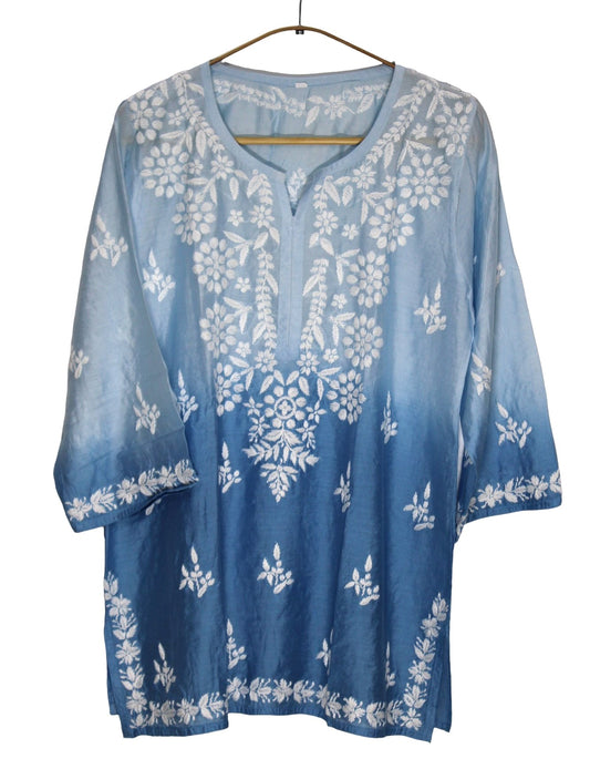 BLUE CHANDERI SILK DUAL SHADE SHORT KURTA