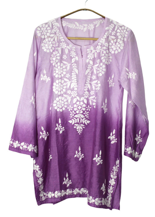 PURPLE CHANDERI SILK DUAL SHADE SHORT KURTA