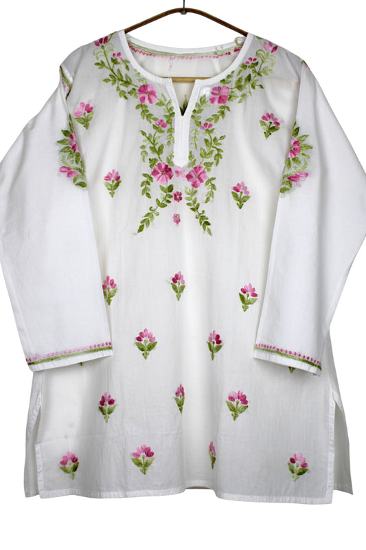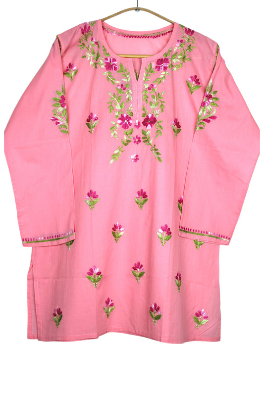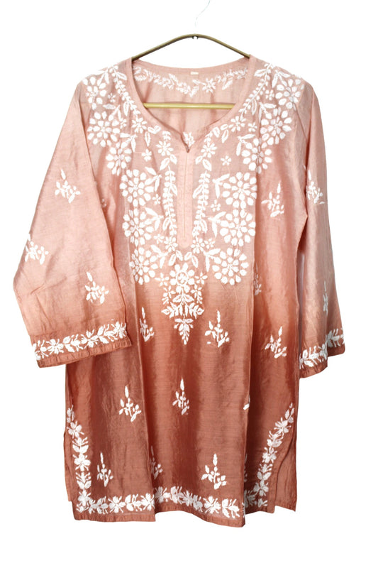 RANI PINK RAYON CHIKANKARI SHORT TOP