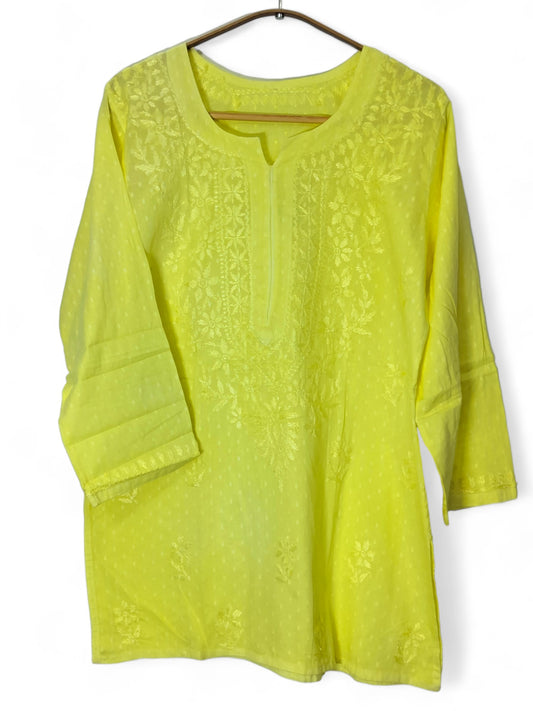 PASTEL YELLOW DOBBY COTTON SHORT KURTA