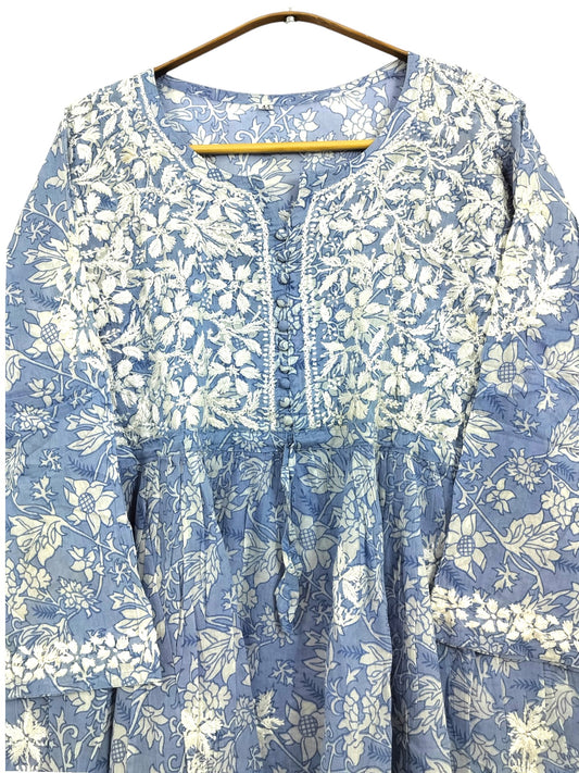 BLUE MULMUL PRINTED SHORT FROCK