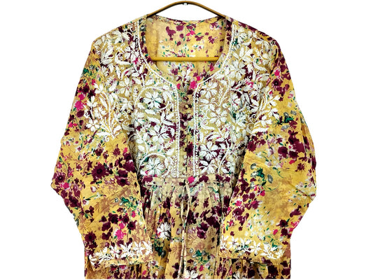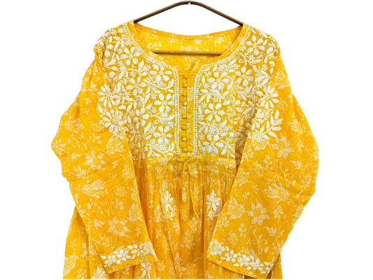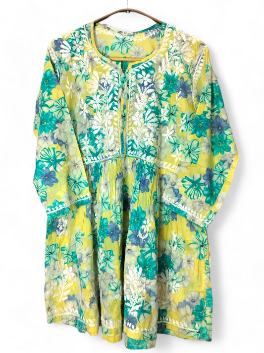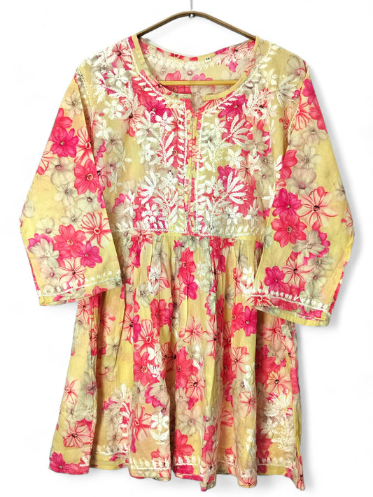 YELLOW MULMUL PRINTED SHORT FROCK