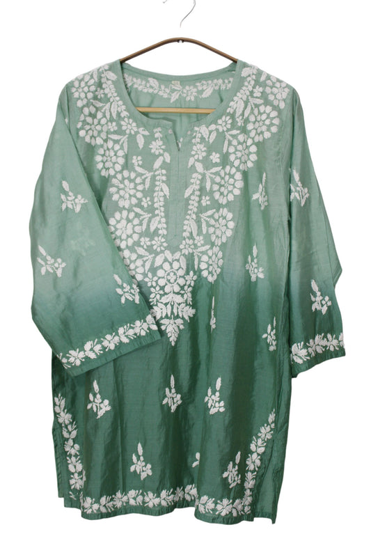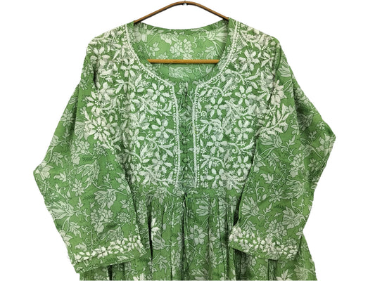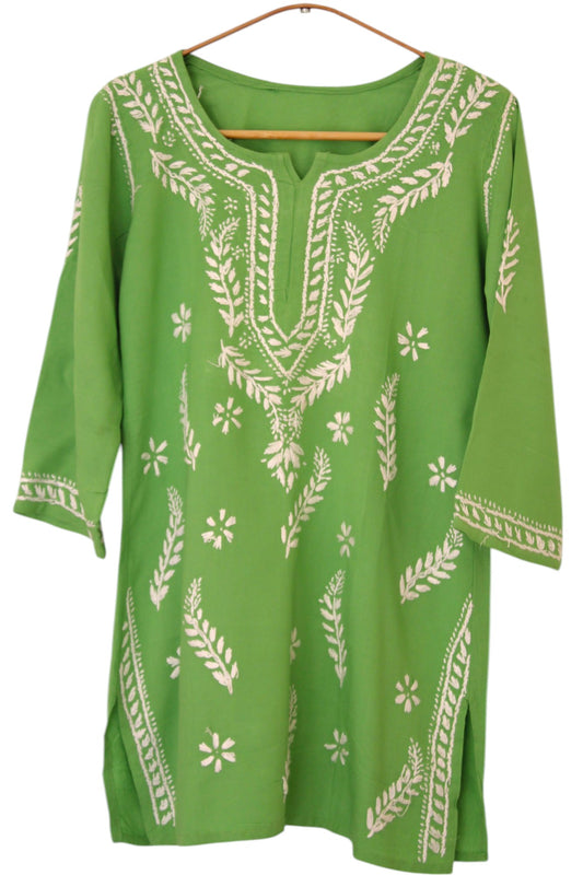 GREEN RAYON CHIKANKARI SHORT TOP