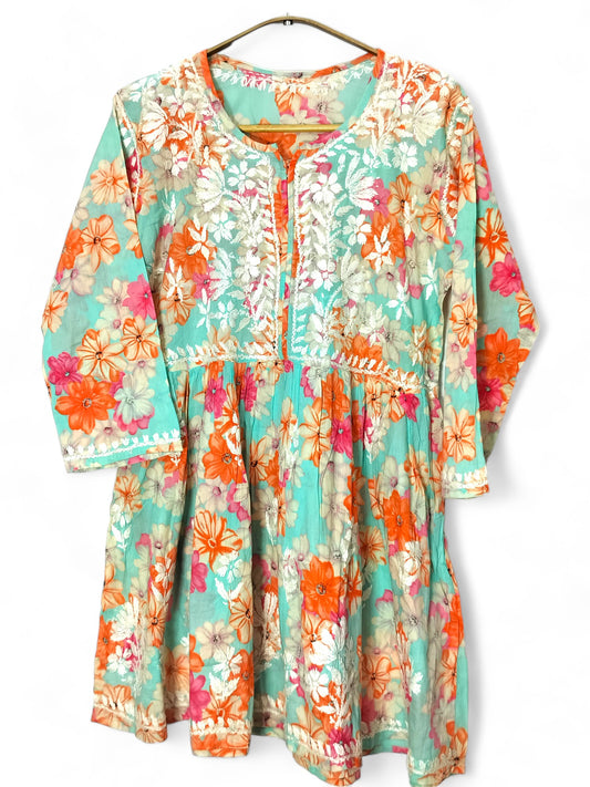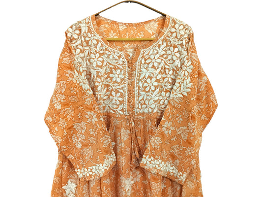 ORANGE MULMUL PRINTED SHORT FROCK