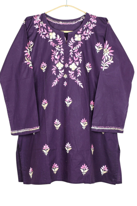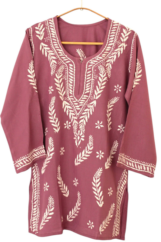 DUSTY PURPLE RAYON CHIKANKARI SHORT TOP