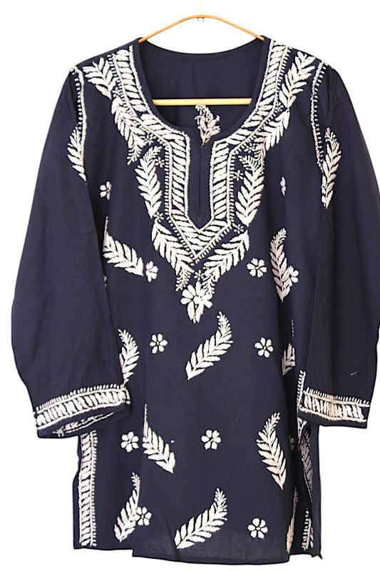 NAVY BLUE RAYON CHIKANKARI SHORT TOP