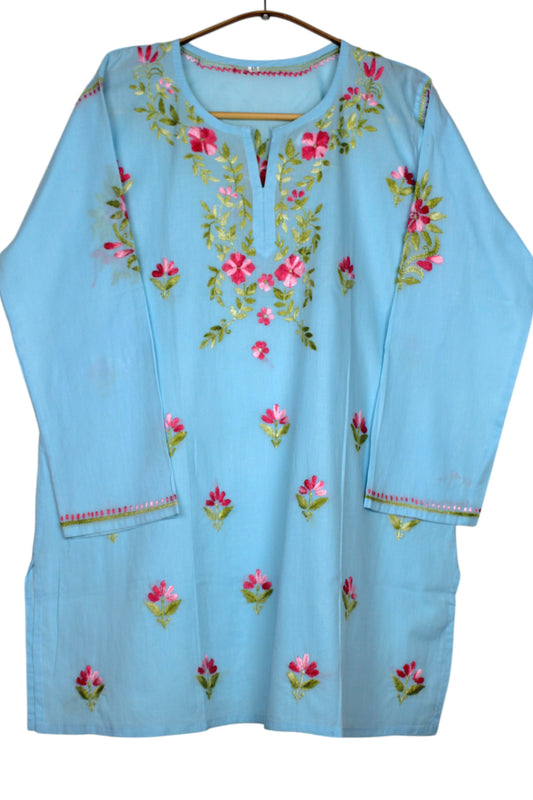 HANIA PREMIUM LIGHT BLUE COTTON SHORT KURTA