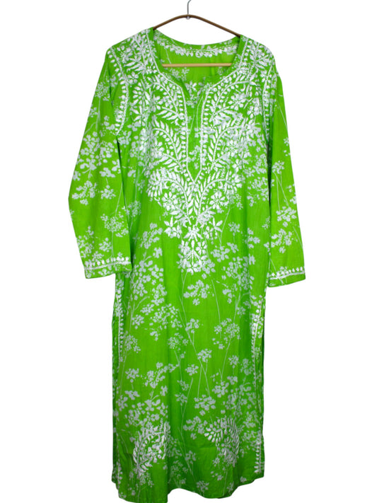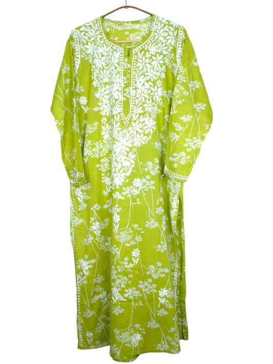 LIME GREEN MULMUL PRINTED LONG KURTA