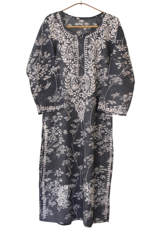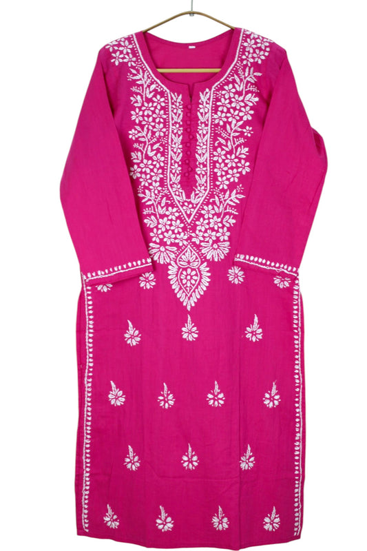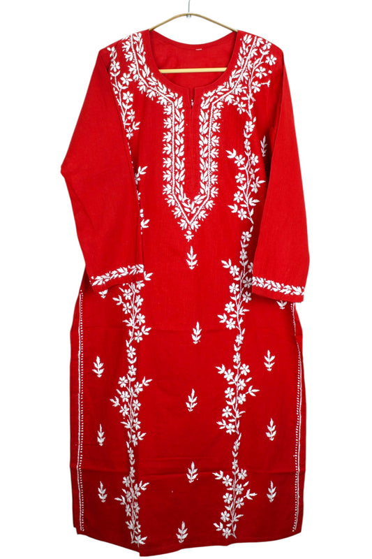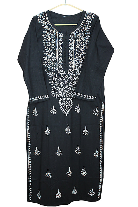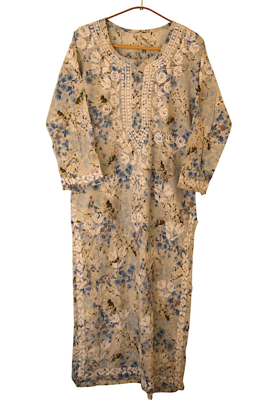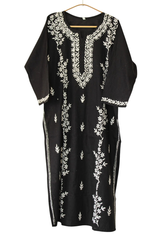 WHITE MODAL LONG KURTA WITH 3D CHIKANKARI