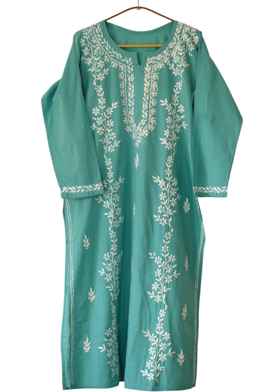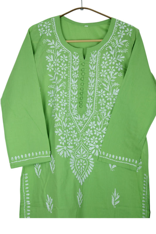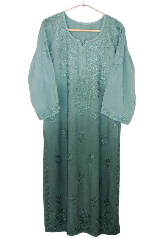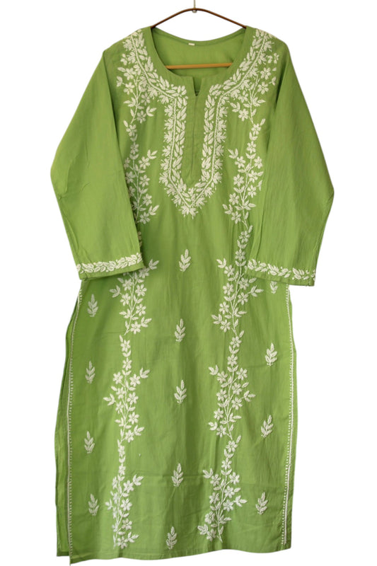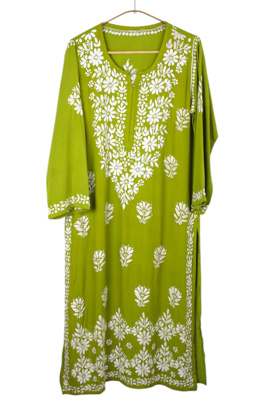 MEHNDI GREEN LONG RAYON CHIKANKARI KURTA