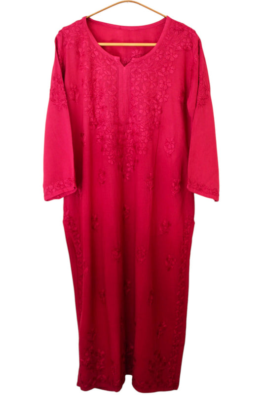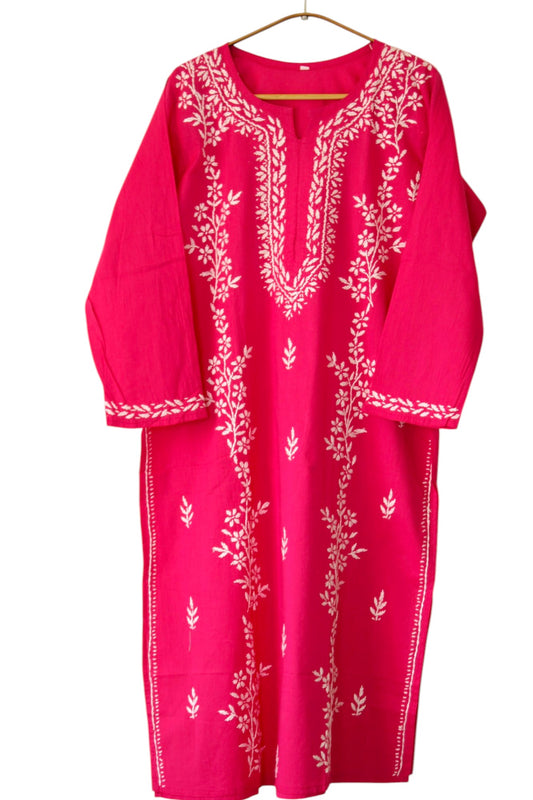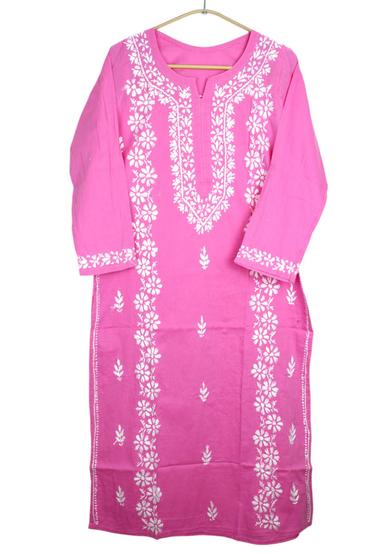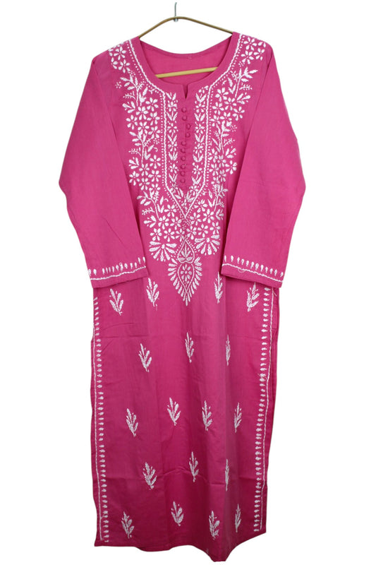 HINA PINK LONG PRINTED RAYON CHIKANKARI KURTA