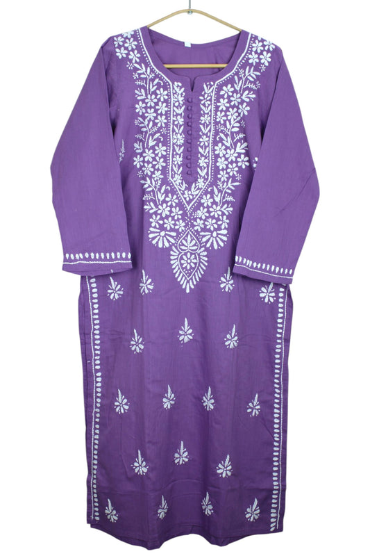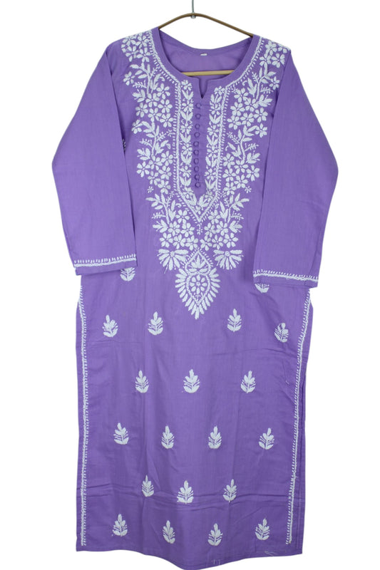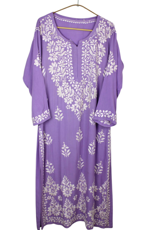 LAVENDER LONG RAYON CHIKANKARI KURTA