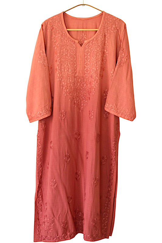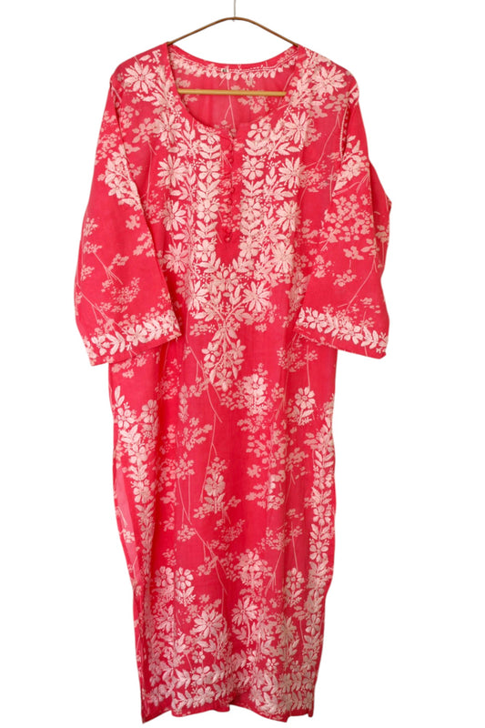 ROSE PINK MULMUL PRINTED LONG KURTA