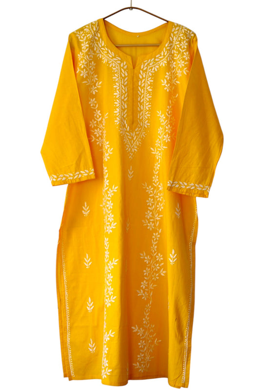 MARIGOLD YELLOW MULMUL PRINTED LONG KURTA