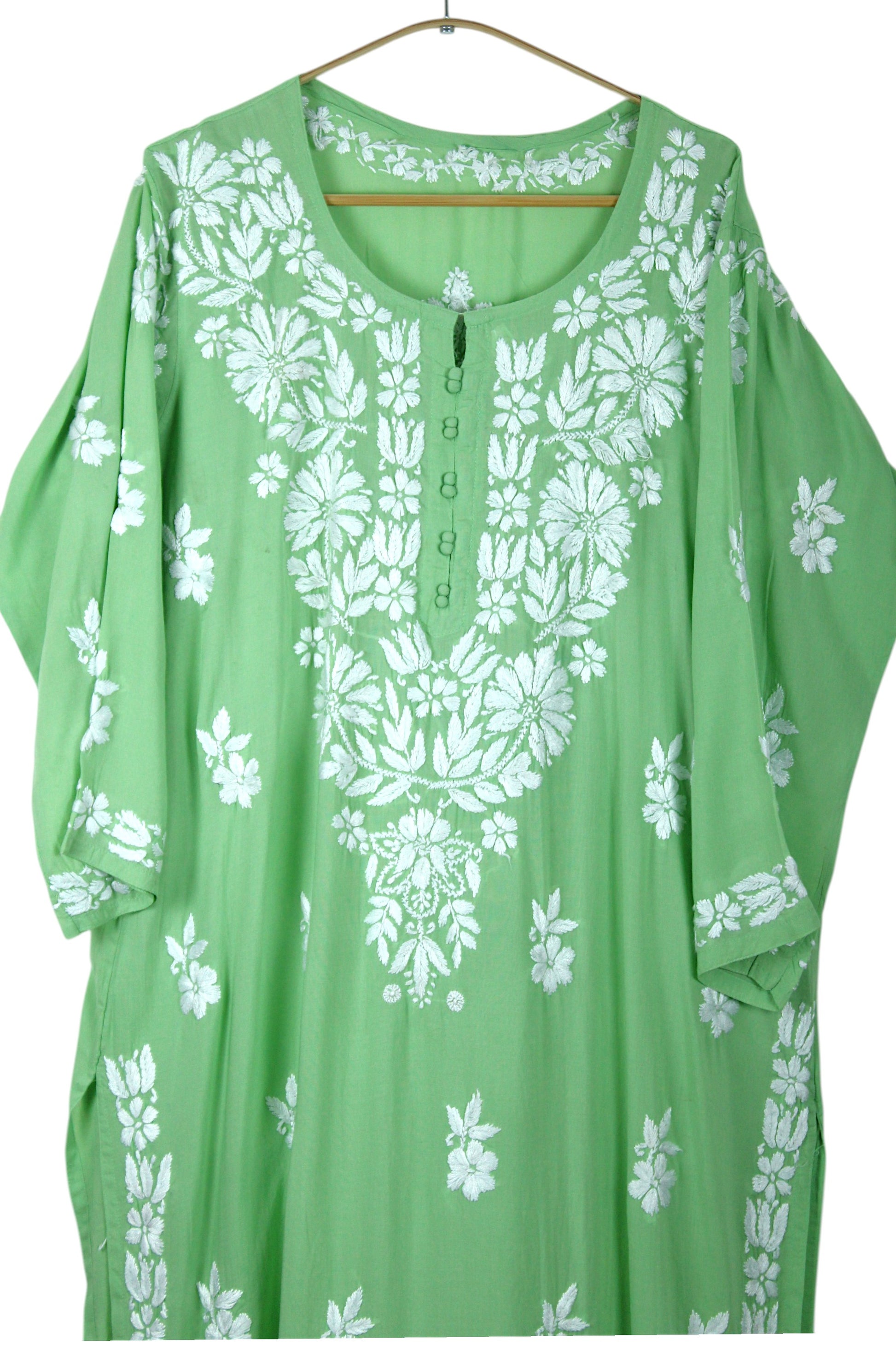 Celebrate the season in style with this long modal kurta, adorned with delicate white thread embroidery. Its airy fabric and soothing texture make it a summer-perfect choice, while the timeless detailing adds a festive charm for special occasions.
